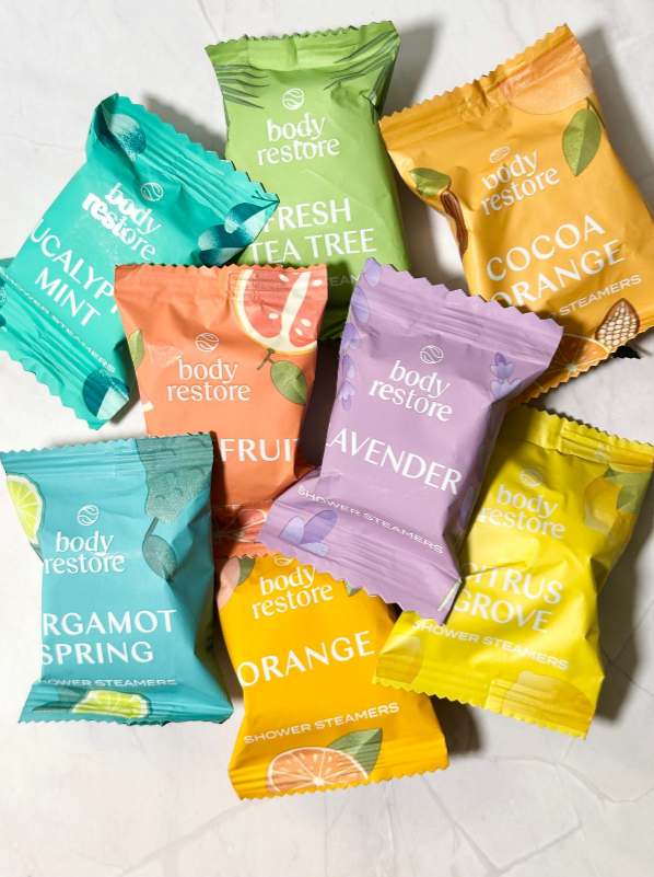 Body Restore Shower Steamers are proudly made in the USA with natural essential oils and clean ingredients, ensuring a pure and safe aromatherapy experience. Each steamer comes in high-quality packaging, delivering a strong and refreshing natural scent that enhances your self-care routine. Features Clean natural ingredients High quality essential oils Recyclable packaging material Long lasting scent.