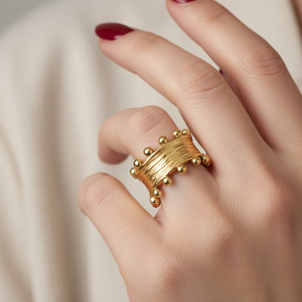 Elevate your everyday style with these stunning geometric rings that blend timeless vintage charm with modern sophistication. Crafted from durable 304 stainless steel and finished with luxurious 18K gold ion plating, these pieces deliver the look of fine jewelry without compromise. Perfect for any occasion, they resist tarnishing and water damage, ensuring they maintain their radiant finish through daily wear. The minimalist geometric design complements any wardrobe while the non-tarnish coating keeps them looking pristine season after season. Discover jewelry that's as practical as it is beautiful.